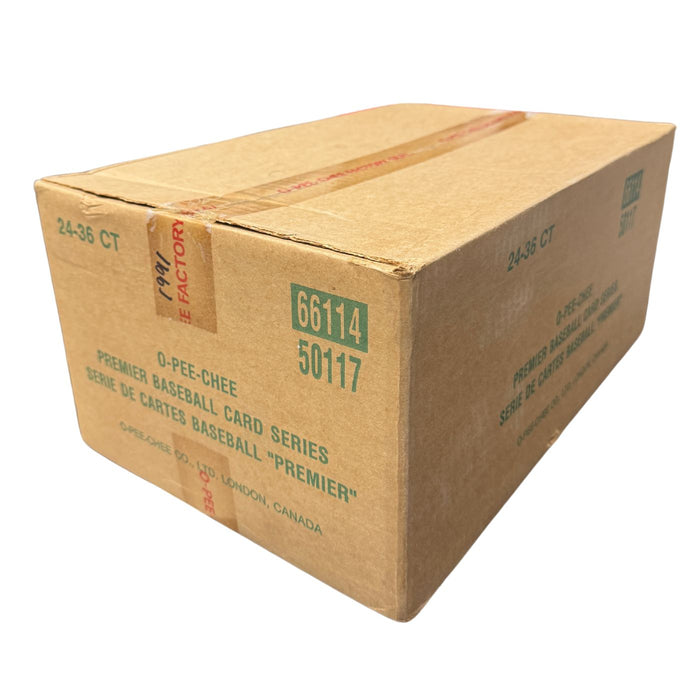 The 1991 OPC Premier set contains 132 standard-size cards. The fronts feature color action player photos on a white card face. All the pictures are bordered in gold above, while the color of the border stripes on the other three sides varies from card to card. The player's name, team name, and position (the last item in English and French) appear below the picture. In a horizontal format, the backs have a color head shot and the team logo in a circular format. Biography and statistics (1990 and career) are presented on an orange and yellow striped background. The cards are arranged in alphabetical order and numbered on the back.