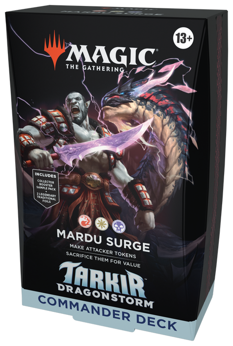 Choose your clan and battle your friends with Commander decks each featuring a legendary clan leader of Tarkir and a Spirit Dragon. Commander decks are ready to play right out of the box and contain everything you need to play Magic’s most popular multiplayer format.